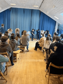 I går hadde vi en veldig fin månedsfest med innslag fra nesten alle klassene der elevene fremførte sanger og dikt mm. I tillegg gjennomførte to elever i 9. en sagekonkurranse, og helt til slutt sang mellomtrinnskoret en sang fra Mary Poppins og ungdomskoret fremførte sangen Tomamina.