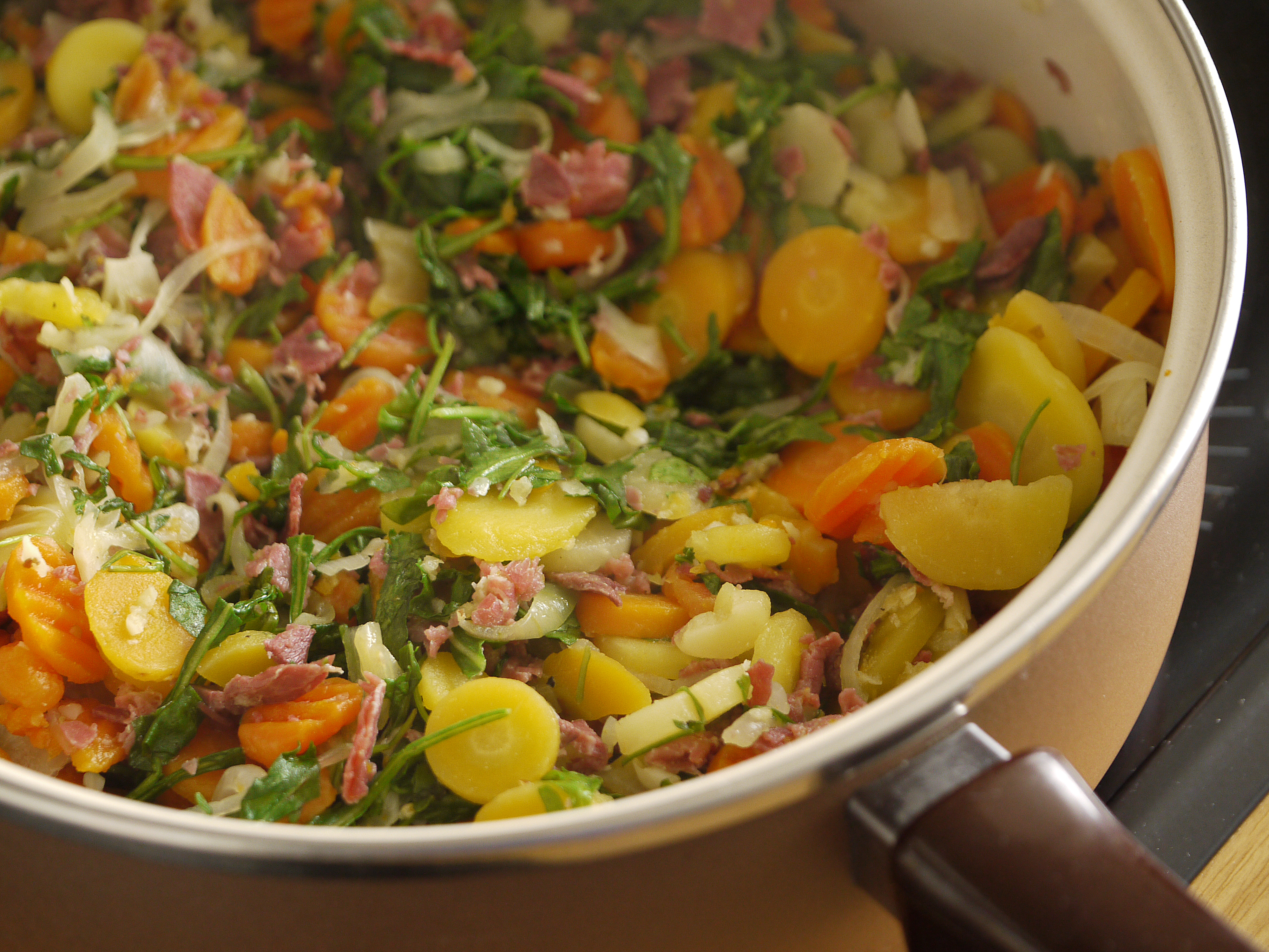 Det serveres et varmt måltid, i tillegg til at elevene kan velge brødmat og pålegg, salater og frukt.